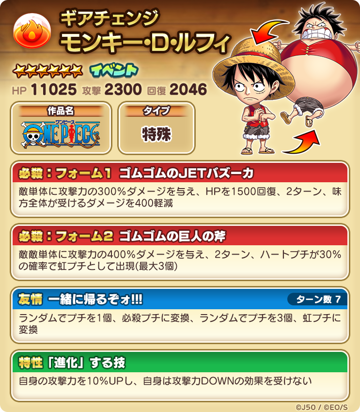 また、ログインするだけでGETできる「ギアチェンジ モンキー・D・ルフィ」にもこの機能が搭載されてるので、ぜひこちらでも体験してみてください◎